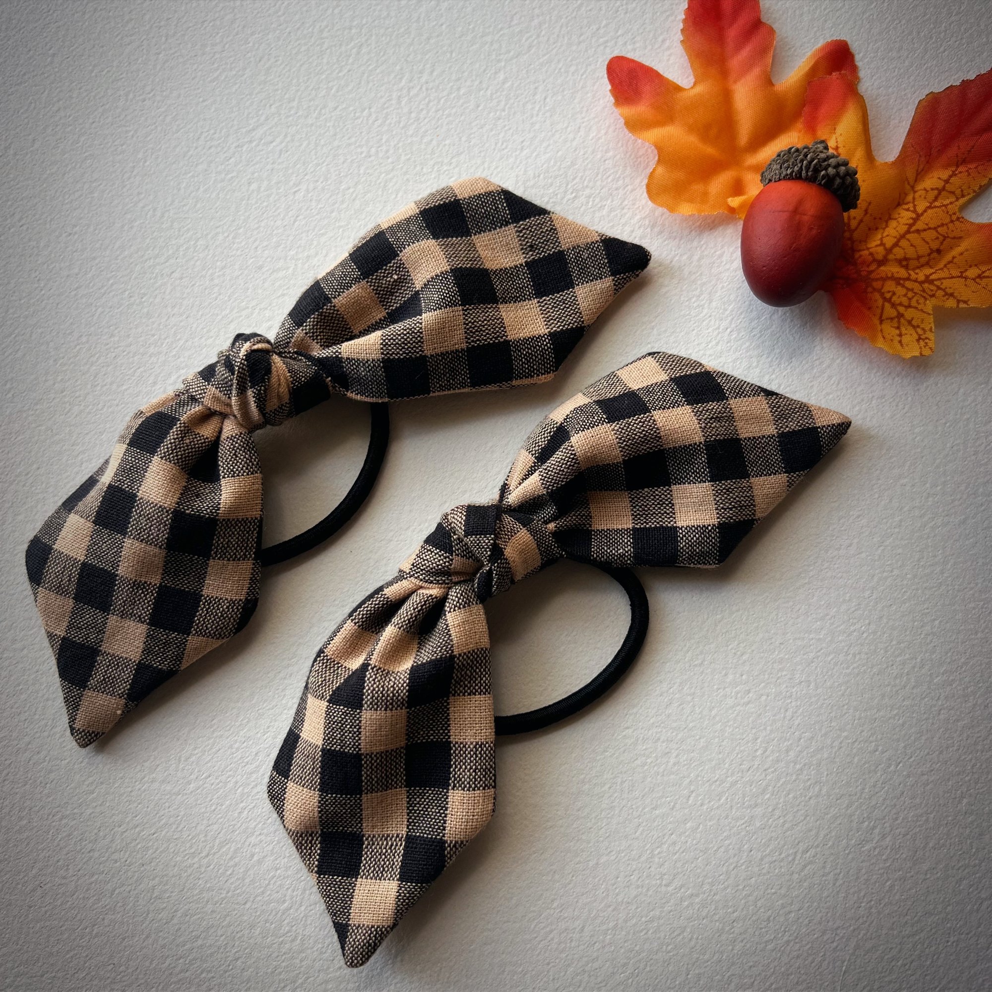 4" cotton knotted bow on black elastic. One size fits most. Listing is for 1 single hair tie.