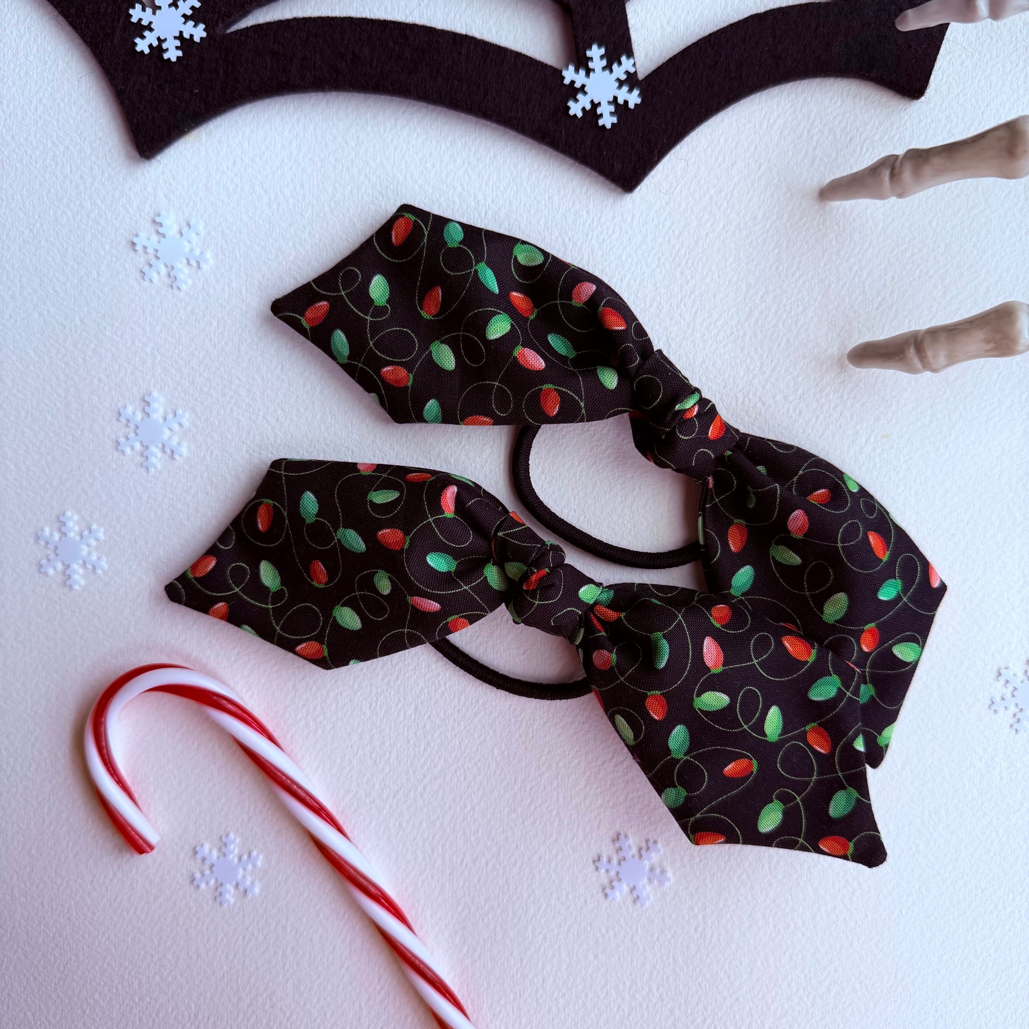 4" cotton knotted bow on black elastic. One size fits most. Listing is for 1 single hair tie.