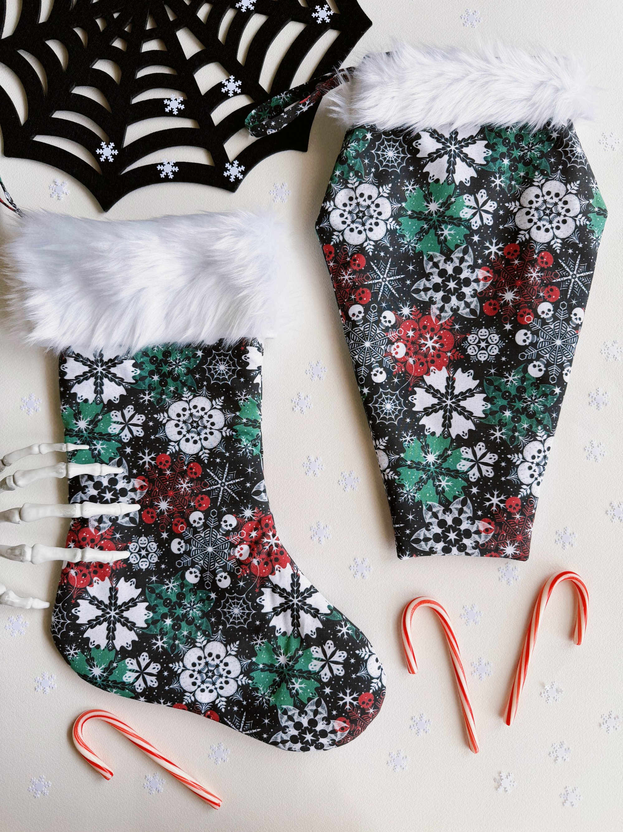 Faux fur trim. Lined with black fabric. Thick inner batting for structure and softness. Loop to hang. Please choose option below.