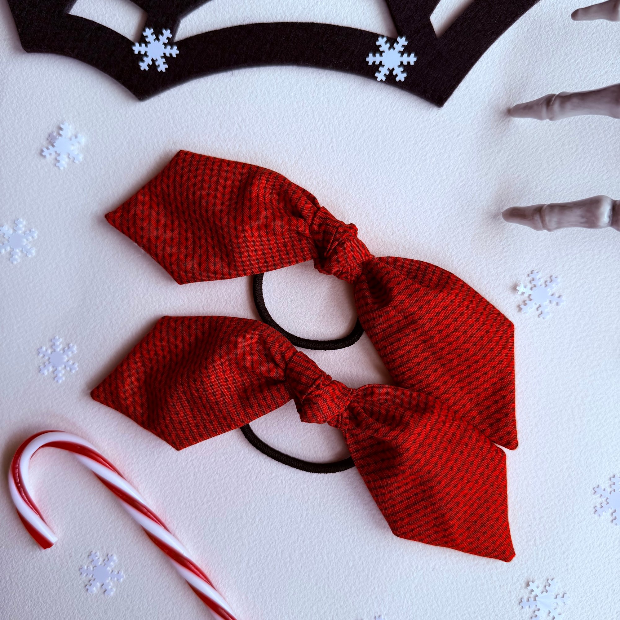 4" cotton knotted bow on black elastic. One size fits most. Listing is for 1 single hair tie.