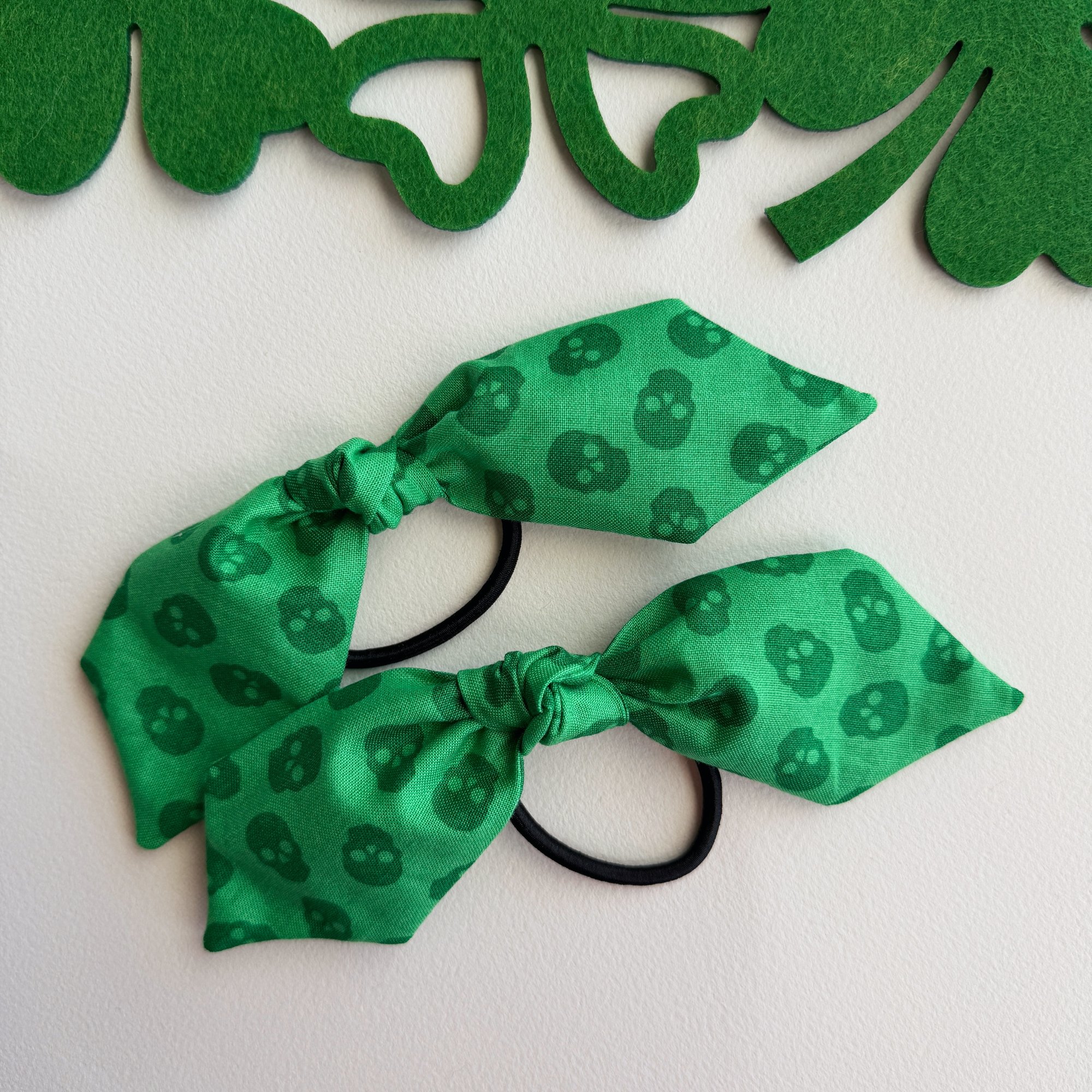 Tossed Green Skulls Hair Tie