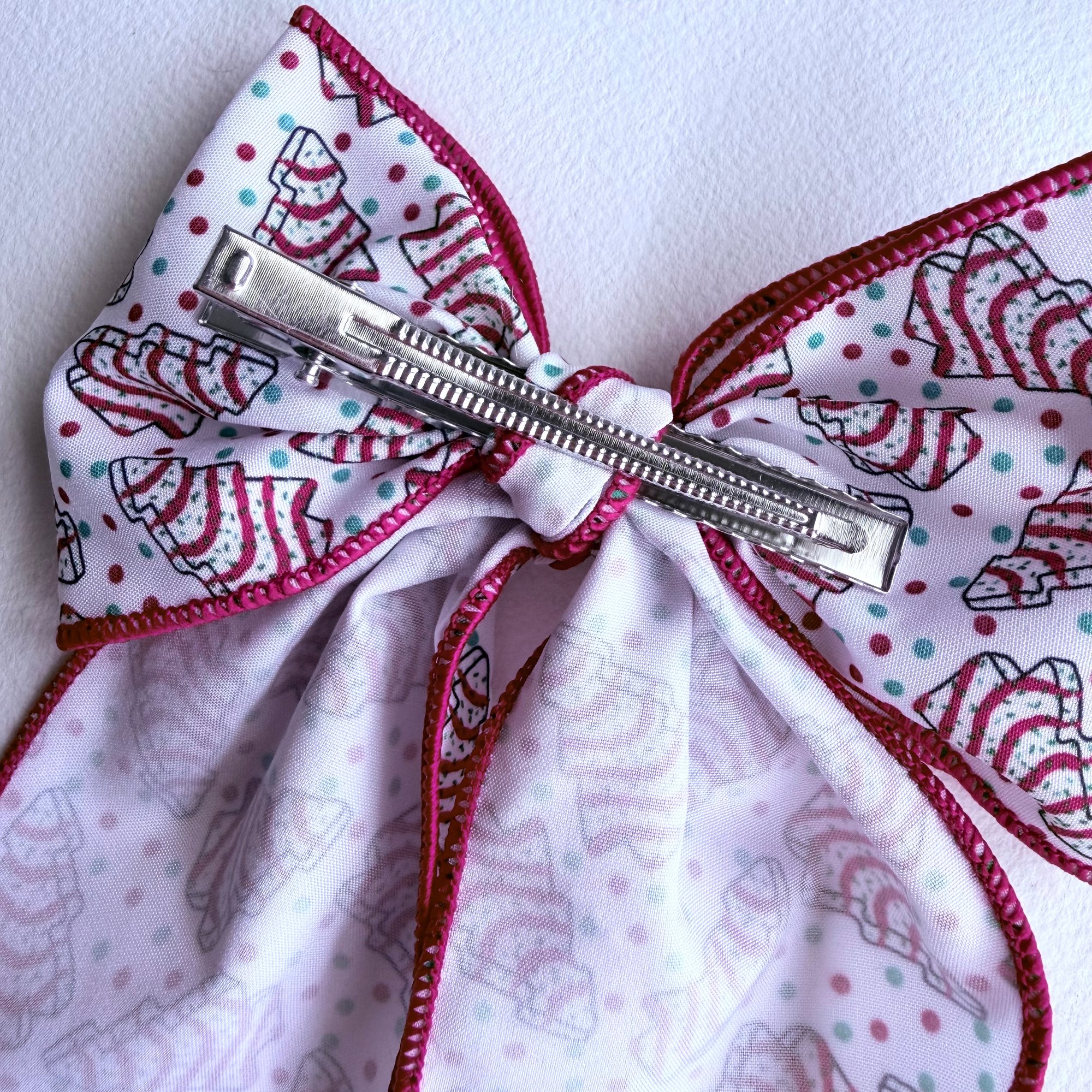 Hand tied bow on metal alligator clip. Approx. 5.5" wide. Listing is for 1 bow.